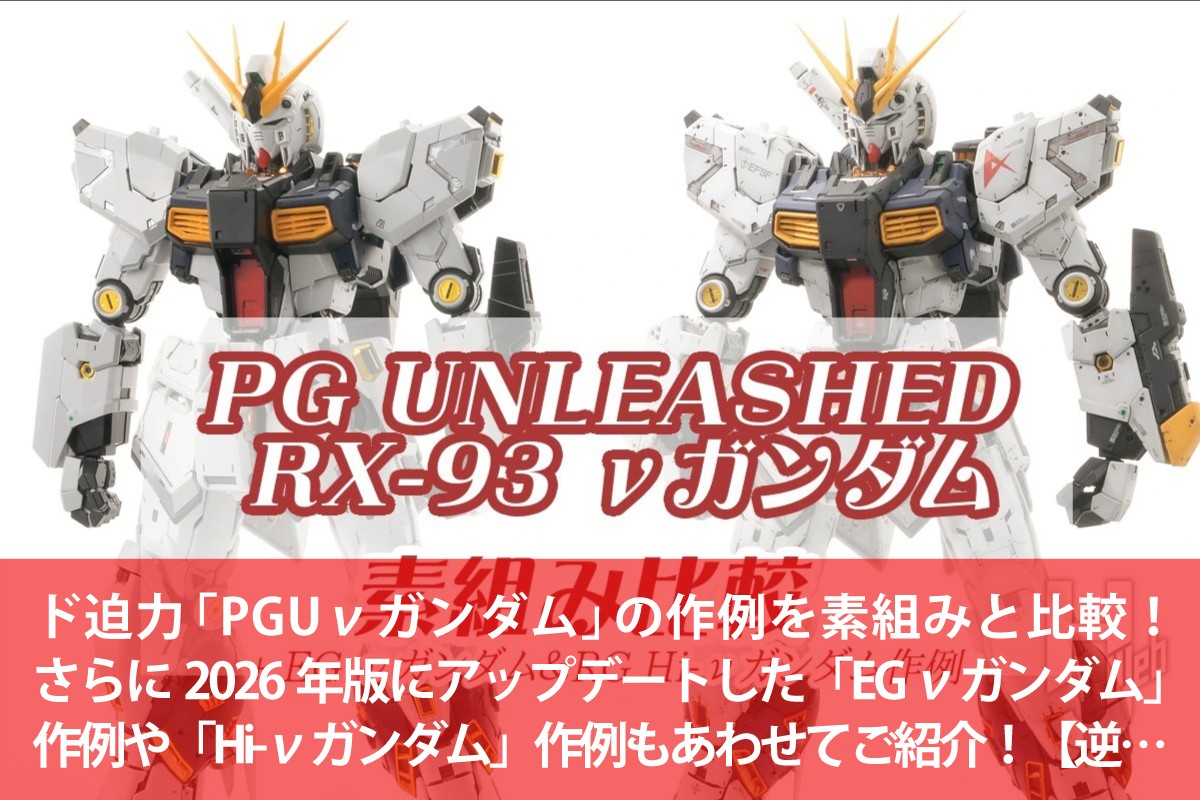 2026.03.01 ド迫力「PGUνガンダム」の作例を素組みと比較! さらに2026年版にアップデートした「EG νガンダム」作例や「Hi-νガンダム」作例もあわせてご紹介!【逆襲のシャア】